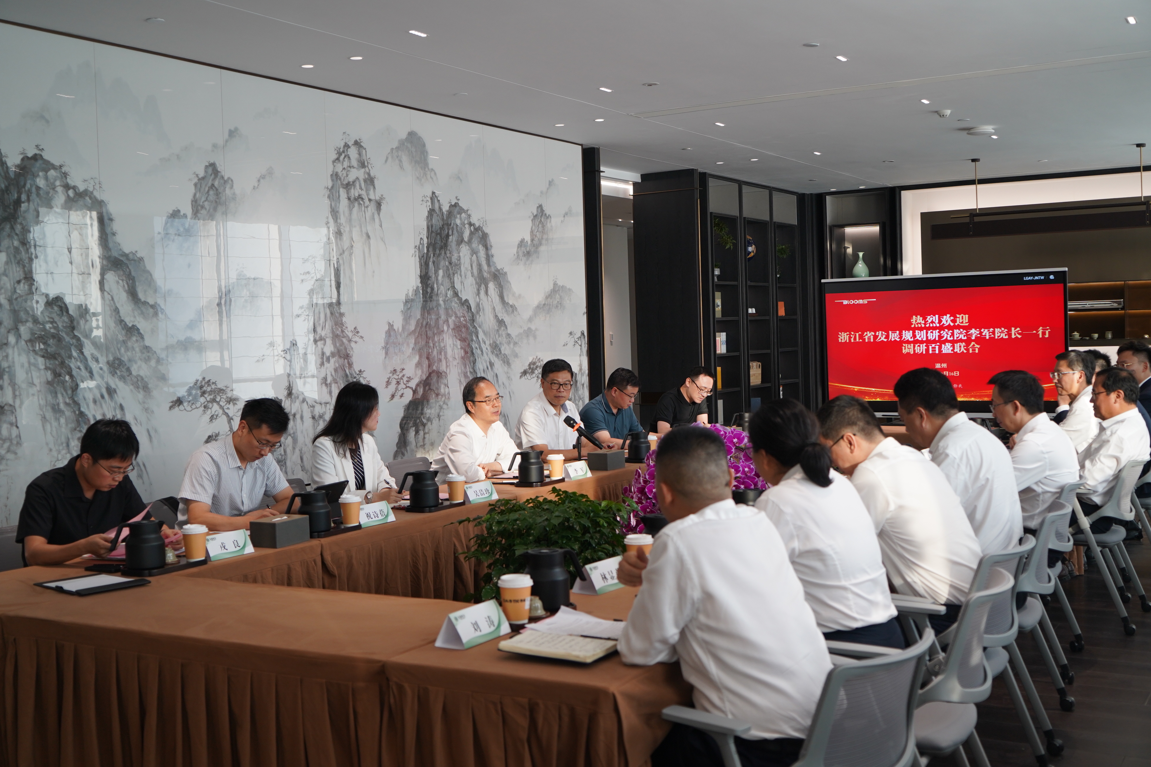 浙江省发展规划研究院副院长兰建平及各相关专业研究所负责人参加调研。百盛联合集团管理层及相关业务板块负责人一同参加座谈研讨。