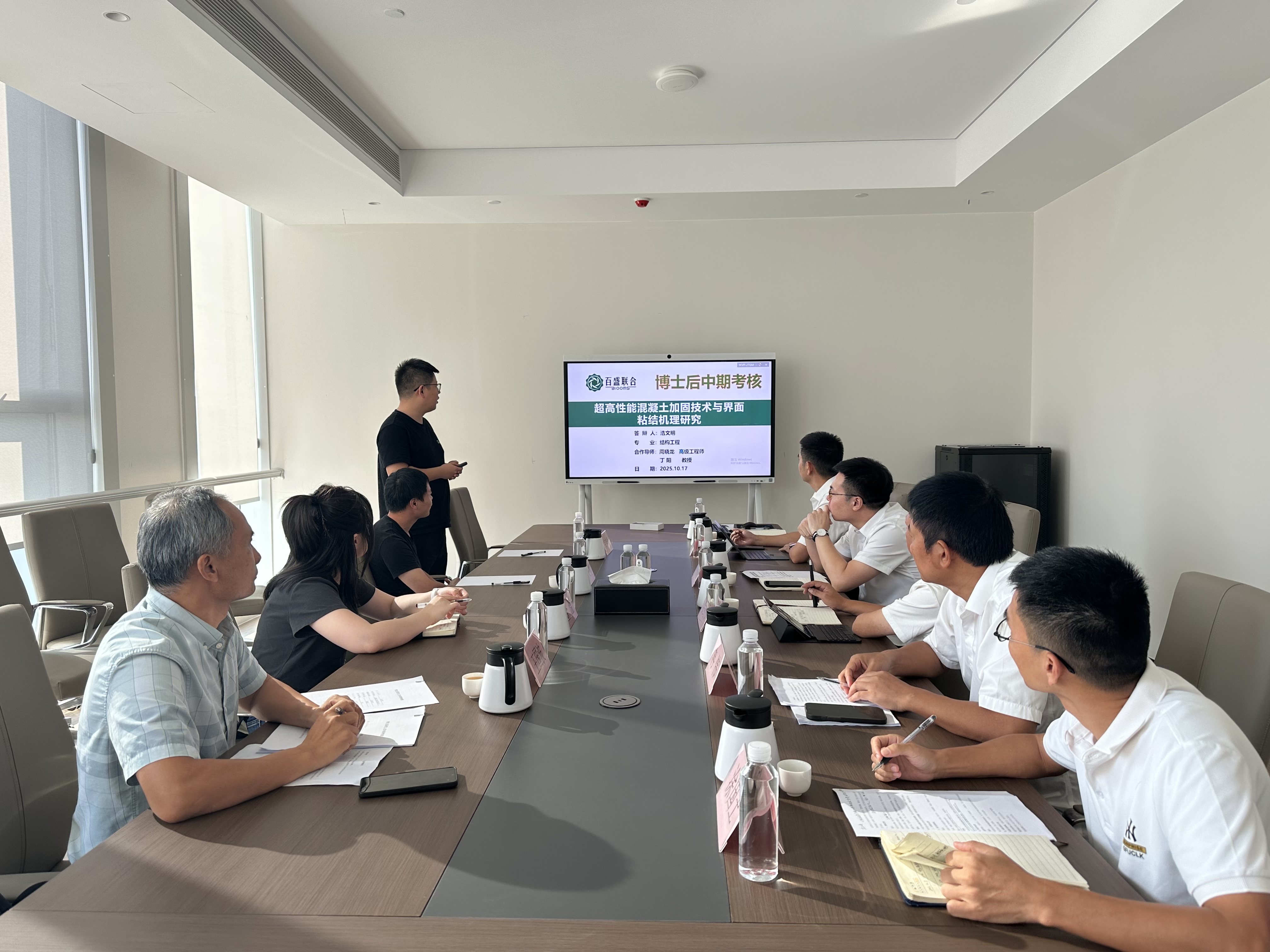 评审会严格按照百盛博士后工作站评审程序进行。宗梦繁、浩文明两位博士依次汇报了在“超高性能混凝土加固技术”、“透水管桩承载特性”课题的研究背景、项目进展情况以及后续研究计划等内容。