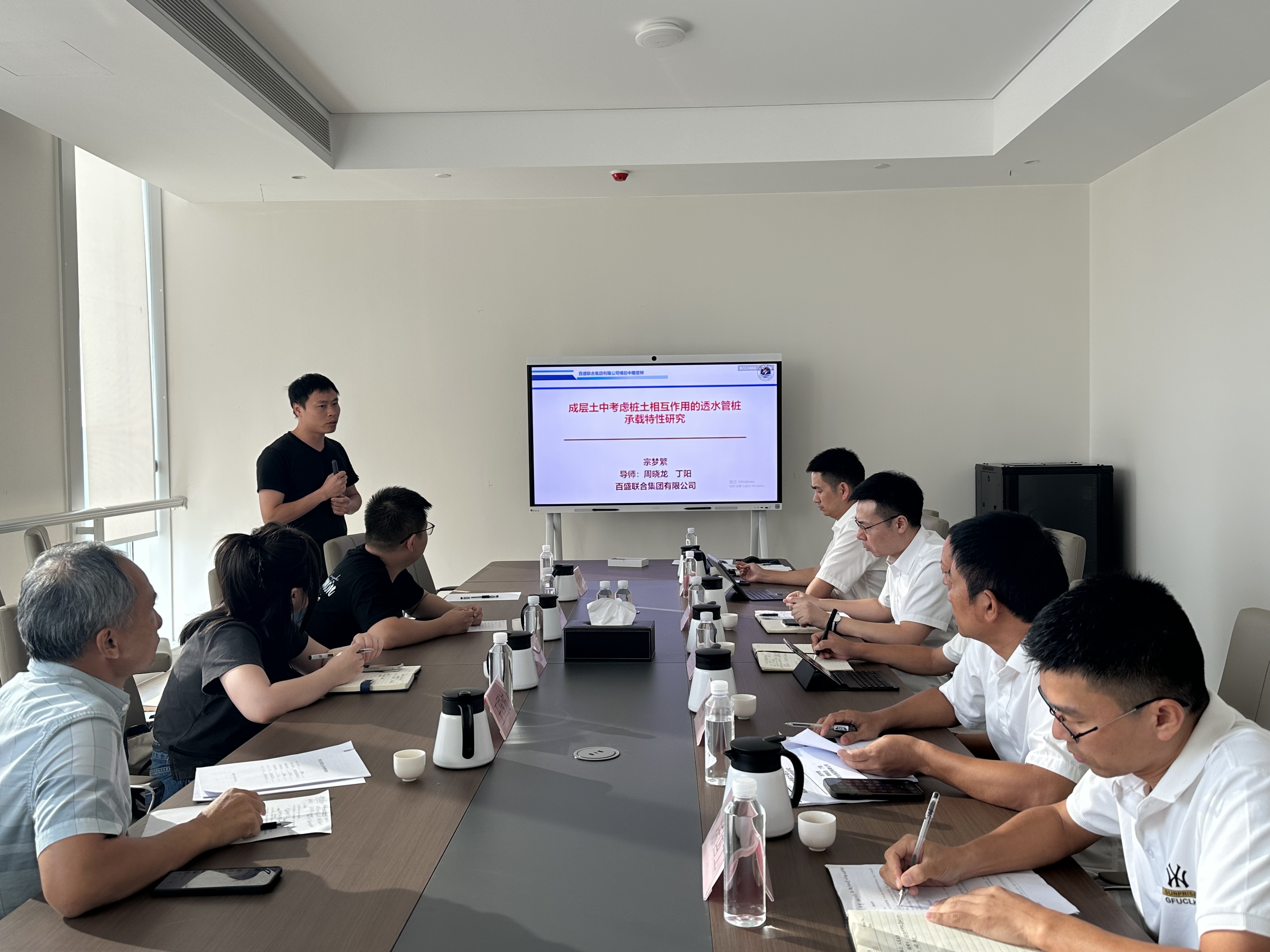 评审会严格按照百盛博士后工作站评审程序进行。宗梦繁、浩文明两位博士依次汇报了在“超高性能混凝土加固技术”、“透水管桩承载特性”课题的研究背景、项目进展情况以及后续研究计划等内容。